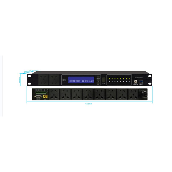 8路國標10A安全劃蓋插座,面板兩個直通為國標10A安全劃蓋插座,使得用電安全更加有保障,設備內置定時開關機功能,最長可達12個月的定時時間設置,本設備可通過紅外學習功能及IO控制功能對第三方設備進行控制。